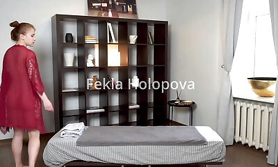 Innocent virgin teenager Fekla Holopova is shy with her masseuse