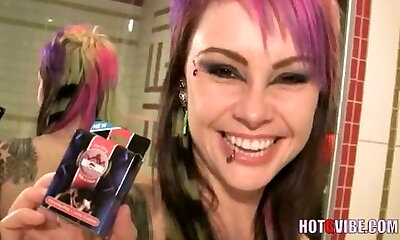 Inked alt honeys play with a strapon
