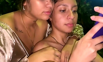 Wild lesbian teen with small tits loving a mind-blowing vibrator pulverize