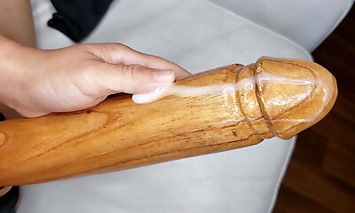 Mesmerizing lesbians use a elastic maker for masturbation