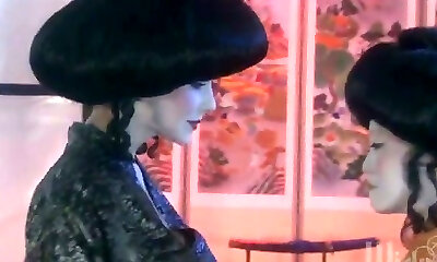 Two chicks in Chinese costumes go wild